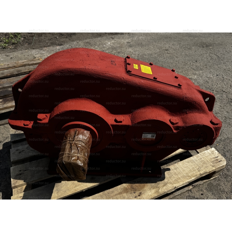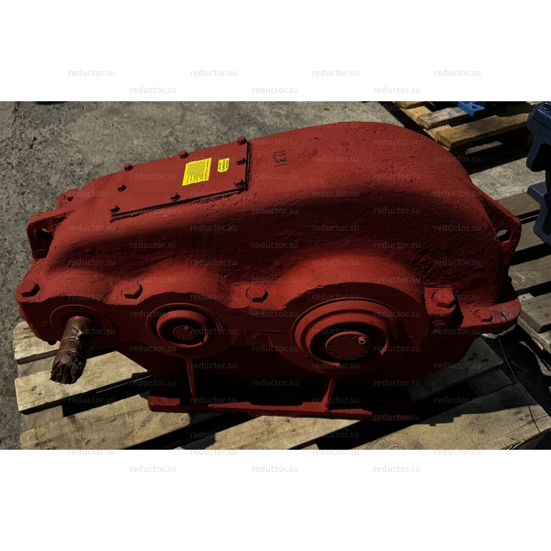 Цилиндрический редуктор ЦДНД-315-31,5-12 с двухступенчатой передачей в горизонтальном исполнении. Особенность редуктора заключается в способе зацепления зубьев, в ЦДНД-315-31,5-12 установлено зацепление Новикова, что позволяет зубчатым колесам более надежно сцепляться друг с другом. Устройство успешно используется в приводных системах подъемно-транспортных механизмов, и служит для увеличения крутящего момента и сокращения количества оборотов.